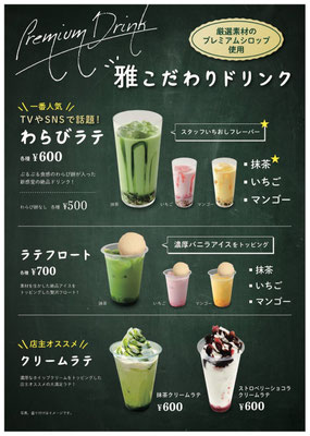 メニュー:かき氷、ラテ各種